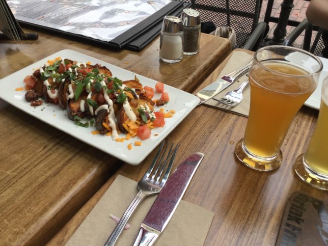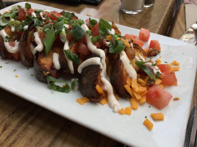 どうやって焼いたらこんなにカリッカリになるのか!(←めちゃくちゃ褒めてる)家のオーブンじゃ不可能な程カリカリサクサク。チリライムのサワークリームとチェダーチーズ、トマト、ネギ、クリスピーベーコンがかかってます。